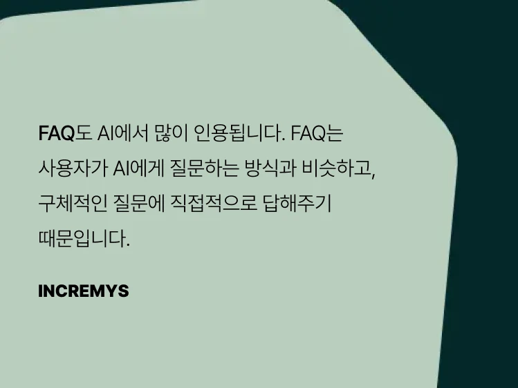 - FAQ도 AI에서 많이 인용됩니다. FAQ는 사용자가 AI에게 질문하는 방식과 비슷하고, 구체적인 질문에 직접적으로 답해주기 때문입니다.