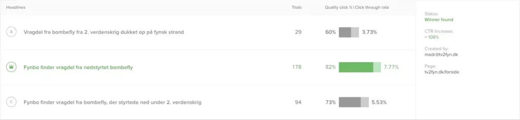 덴마크의 뉴스 매체 TV 2 Fyn은 클릭률(CTR)을 높이기 위해 2022년 말부터 2023년 초까지 3주간 A/B 테스트를 진행했습니다. ChatGPT로 작성한 헤드라인과, 사람이 작성한 헤드라인을 비교한 것이죠. 3주간 46회의 A/B 테스트를 진행한 결과, 46%의 독자가 AI로 지은 제목을 택했고, 24%만이 사람이 쓴 헤드라인을 택했습니다.